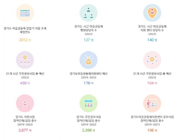 - 경기도 마을공동체 사업 및 주민 현황, 행정역량, 지원센터, 공간 정보 공개