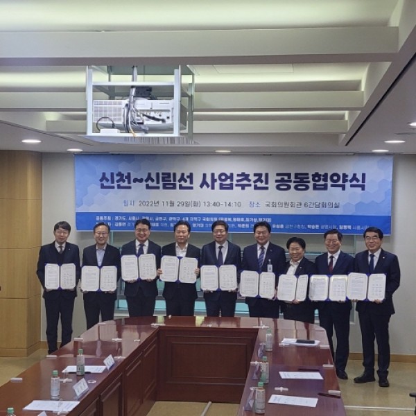 ○ 29일 국회 의원회관서 ‘신천-신림선 광역철도 사업 공동 협약’ 체결