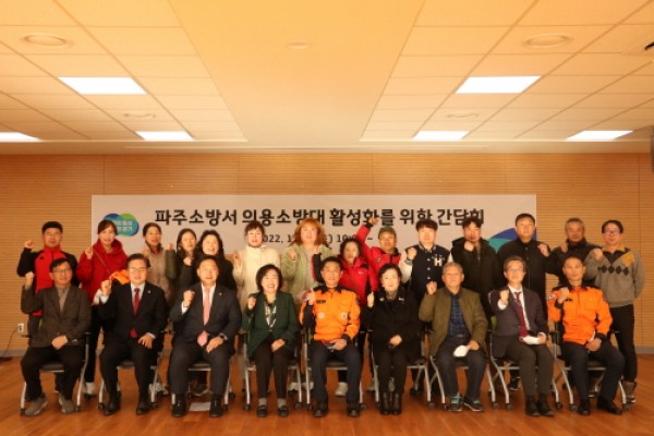 경기도의회 교섭단체 국민의힘(대표의원 곽미숙, 고양6)은 12월 1일 조리읍 행정복지센터에서 의용소방대(이하 의소대) 활성화를 위한 간담회를 가졌다. ※ 참석자 - 도의회 : 국민의힘 곽미숙 대표의원, 김정영 의원, 고준호 의원 - 기 관 : 경기도, 파주시, 소방(북부본부, 파주소방서) ※ 도 안전관리실장, 사회재난과장, / 시 안전관리팀장 / 경기도북부소방재난본부 대응과장, 예산장비팀장…