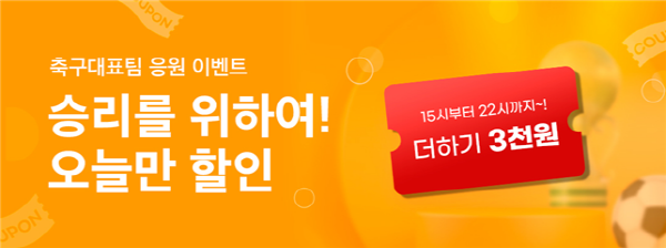 경기도 공공배달앱 배달특급이 세계인의 축구 축제 ‘2022 카타르 월드컵’에서 대한민국 축구 국가대표팀 첫 승리를 기원하는 이벤트를 마련했다.경기도주식회사는 오는 28일 열리는 2022 카타르 월드컵 가나 전(戰)을 앞두고, 대한민국 국가대표팀의 선전을 위한 할인 이벤트 ‘승리를 위하여! 오늘만 할인’을 또 한 번 진행한다고 27일 밝혔다.사진1. 공공배달앱 배달특급 2022 카타르 월드컵 대한민국 …