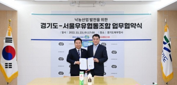 경기도와 서울우유협동조합은 23일 오후 경기도청 북부청사에서 ‘낙농산업 발전을 위한 경기도-서울우유협동조합 업무협약’을 체결, 젖소품종 다양화 등 다양한 분야에서의 협력을 추진하기로 했다. 이번 협약은 최근 사료 가격 급등, 2026년 자유무역협정(FTA) 유제품 시장 완전 개방 등으로 어려움을 겪는 도내 낙농가에 새로운 활력을 불어넣고, 지속적이고 안정적 성장을 도모하고자 마련됐다.이날 협약식에는 김영수 경기도 축산…