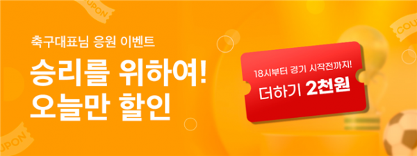 배달특급이 전 세계인들의 축구 축제 ‘2022 카타르 월드컵’ 기간을 맞아, 대한민국 국가대표팀 첫 경기를 기념하기 위해 나섰다. 경기도주식회사는 2022 카타르 월드컵 우루과이 전(戰) 대한민국 국가대표팀의 선전을 기원하기 위한 배달특급 2,000원 할인 이벤트 ‘승리를 위하여, 오늘만 할인!’을 진행한다고 24일 밝혔다. 이번 이벤트는 이날 오후 10시(한국시간)로 예정된 국가대표팀 경기를 소비자들이 맛…
