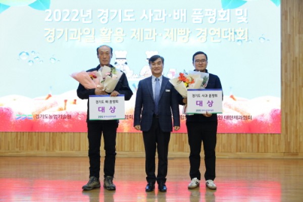 경기도농업기술원은 지난 17일과 18일 양일간 도 농기원 농업과학교육관에서 경기도 최고 품질의 ‘사과, 배 선발을 위한 품평회 및 과일활용 제과제빵 경연대회’를 개최했다고 20일 밝혔다. 1.2022년+과수품평회(대상+수상자) 도 농업기술원은 과수농가 품질 향상과 우리 과일 소비 촉진을 위해 매년 과수 품평회와 전시를 추진하고 있다. 이번 품평회에는 사과, 배를 활용한 제과제빵 경연대회를 대한제과협회와 함께…