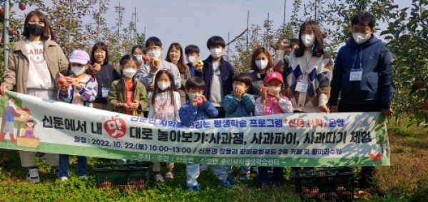 신둔면 평생학습센터는 지역을 살리는 평생학습 프로그램으로 “신둔에서 내맛대로 놀아보기”신둔촌학을 지난 22일 토요일 운영하였다. 신둔에서 내맛대로 놀아보기신둔면 평생학습센터는 4분기 신둔 학습편의점의 한 코너로 신둔촌학 코너를 개설 사과를 주제로 장동리 향미로컬 푸드 2층 카페와 과수원에서 가족 20명과 함께 체험을 진행하였다. 체험프로그램으로 사과잼과 사과파이 만들기 체험과 시식 이후 과수원…