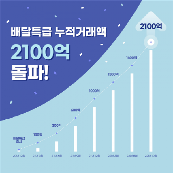 ○ 배달특급, 누적 거래액 2,100억 원 돌파 (10월 23일, 일요일 기준)