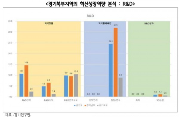 경기북부지역이 남부지역과의 발전격차를 줄이거나 도약시키기 위해서는 기존의 지역발전과 성장 방정식을 ‘건너뛰는’ 방식의 발전전략을 추구하자는 ‘퀀텀점프를 위한 경기북부지역 발전전략’ 보고서를 경기연구원이 22일 발표했다.경기북부지역의+혁신성장역량+분석_R&D (1) 경기북부지역은 지난 30여 년간 산업단지 조성, 교통인프라 건설, 일산⋅양주⋅다산 신도시 건설 등에도 불구하고 저발전 낙후지역을 탈피하지 못하고 있고, 서…