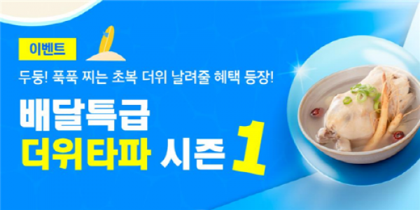 더운 여름, 보양식을 즐기며 삼복더위를 슬기롭게 이겨낼 소비자를 위해 배달특급이 또 한 번 특별한 이벤트를 준비했다.경기도주식회사는 삼복 중 하나인 ‘초복’을 맞아 오는 16일과 17일 주말 양일간, ‘더위타파 시즌1’ 이벤트를 진행한다고 14일 밝혔다. 사진1. 공공배달앱 배달특급 더위타파 시즌1 배너 이번 이벤트는 초복을 맞아 보양식을 즐기고 싶은 소비자를 위해 마련된 것으로, 최소 주문금액 1만8,00…