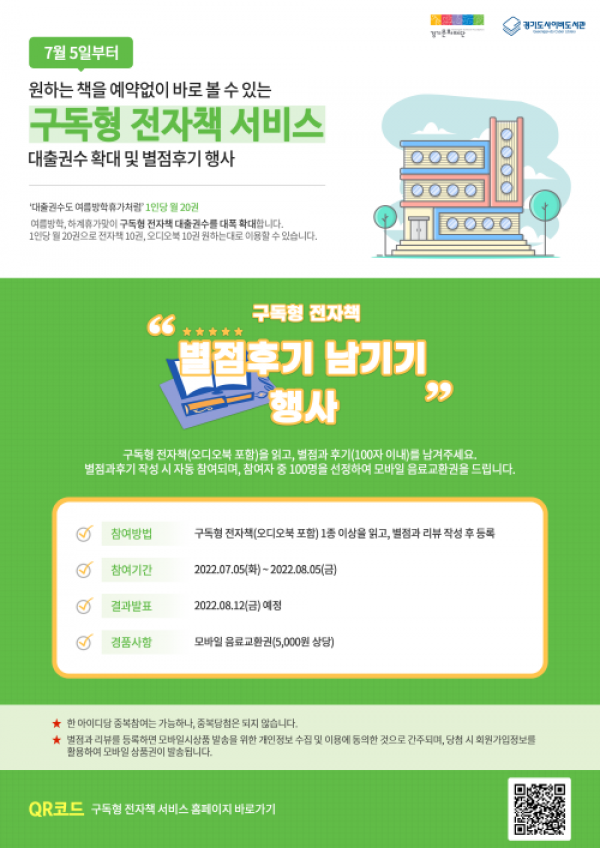 ○ 구독형 전자책 이용 후기 작성 응모 행사, 7월 5일부터 한 달간 진행