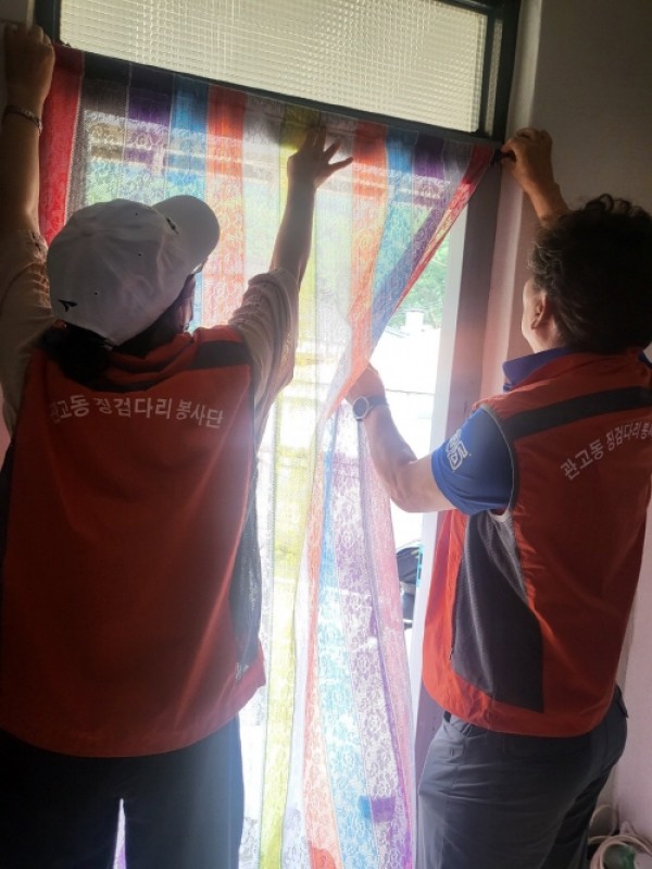 관고동 징검다리봉사단(단장 이옥선)에서 7월 6일 장애 독거 어르신 집의 창문 방충망을 수선하는 등 집수리 봉사활동을 펼쳤다. 20220706 징검다리봉사단 사진해당 어르신은 최근 사음동으로 전입한 거동이 불편하신 장애인으로 연일 폭염과 열대야가 극성을 부리는 장마철에 방충망이 없어 창문을 열지 못하고 무더위를 견디고 있는 상황이었다. 밑반찬 지원 대상인 어르신의 집을 살펴본 봉사단원들이 무더위로 불편을 겪고…