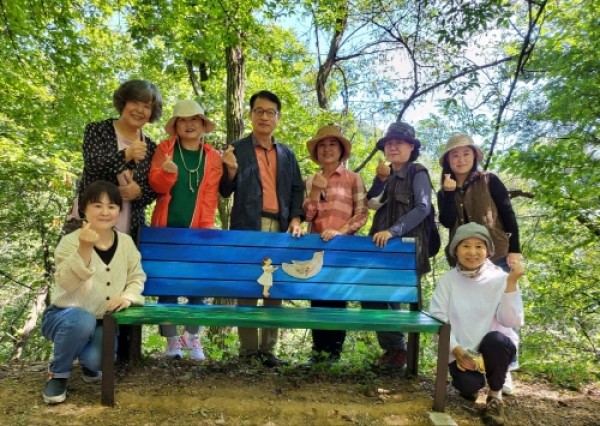 신둔면 5060신중년 토요예술캠프 정개산 쉼터 벤치디자인 재능기부로 완성