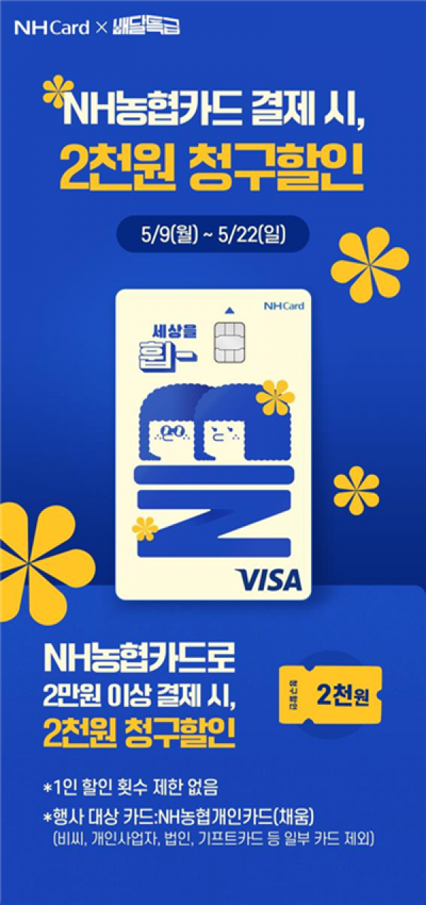 ○ 배달특급 9일~22일 2주간, NH농협카드 결제 회원 ‘2,000원 할인’ 제공