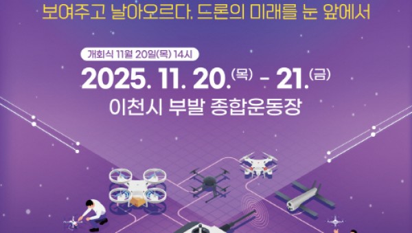이천시(시장 김경희)는 ‘이천의 하늘이 바뀌면, 대한민국의 산업 지도가 바뀔 것’이라는 비전을 가지고 드론페스티벌을 연다. 1. 이천시 2025 이천 첨단방산드론 페스티벌 개최 이천시(시장 김경희)는 오는 11월 20일(목)부터 21일(금)까지 이틀간, 부발읍 종합운동장(무촌리 52) 일원에서 ‘2025 이천 첨단방산드론 페스티벌’을 개최한다. 개막식은 11월 20일 14:00로 드론의 미래를 보는 첫걸음을…