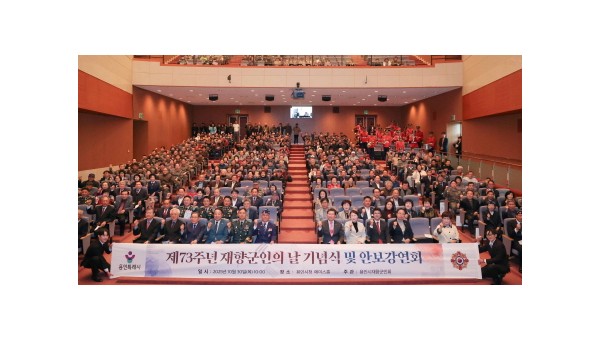 용인특례시(시장 이상일)는 30일 시청 에이스홀에서 ‘제73주년 재향군인의 날 기념식’을 개최했다고 밝혔다. 30일 용인특례시청 에이스홀에서 '제73주년 재향군인의 날' 기념식이 열렸다.이날 행사에는 이상일 용인특례시장과 향군회원, 보훈·안보단체 회원 400여명이 참…