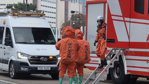 경기도는 25일 수원월드컵경기장 제3주차장에서 드론 폭발물 및 화학물질 테러 대응 ‘2025년 대테러·사회재난 대비 합동훈련’을 실시했다. 대테러 합동훈련(1)경기도와 경기남부경찰청, 국가정보원 경기지부가 공동 주관한 이번 훈련에는 소방, 환경부, 군 등 총 11개 유관기관에서…