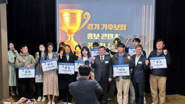 경기도가 전국 최초로 기후 관련 건강피해를 보장하는 ‘경기 기후보험’을 추진중인 가운데 정책 홍보를 위해 ‘경기 기후보험 홍보 콘텐츠 공모전’을 열고 총 17개의 우수작품을 선정했다. 기후보험+공모전+사진 경기도는 지난 7일 경기바이오센터에서 ‘경기 기후보험 홍보 콘…