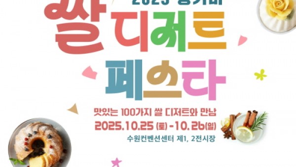 경기미를 활용한 다양한 쌀디저트를 한자리에서 만나볼 수 있는 ‘경기미 디저트 페스타’가 오는 25일부터 26일까지 수원컨벤션센터에서 열린다. 경기미+쌀디저트페스타+메인+포스터‘경기미 디저트 페스타’는 경기도가 우수 경기미 소비 확대를 위해 지난해 처음 열렸다. 올해가 두번째다.…