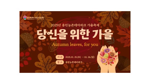 용인특례시(시장 이상일)는 25일부터 26일까지 농촌테마파크에서 ‘2025 도·농 어울림 행사(가을)’ 행사를 개최한다고 22일 밝혔다. 용인특례시 '2025 도농 어울림 행사(가을) 안내 포스터이번 행사는 가을 햇살 아래 국화 전시와 농촌의 풍경이 어우러진 휴식 공간을 시민들…