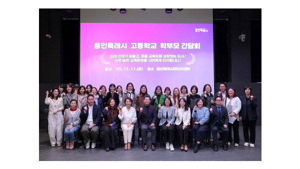 이상일 용인특례시장은 11일 기흥구 동백동에 있는 미디어센터에서 23개 고등학교 학부모 대표 50명과 학교별 교육 현안과 건의사항을 청취하고 지원 방안을 논의했다.이상일 용인특례시장이 11일 용인미디어센터에서 고등학교 학부모 대표들과 간담회를 마친 뒤 기념사진을 촬영하고 있다이 시장은 …