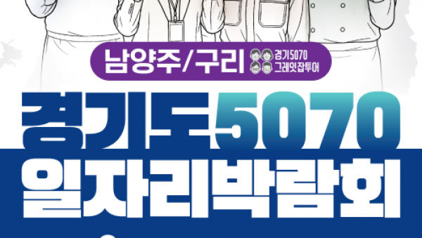 경기도와 경기도일자리재단이 11월 20일 남양주체육문화센터에서 ‘경기도 5070 일자리박람회 in 남양주+구리’를 개최한다. [사진자료]+경기도5070일자리박람회+포스터_남양주,구리‘경기도 5070 일자리박람회’는 도내 중장년 구직자의 재취업을 지원하는 ‘경기 5070 그레잇잡…