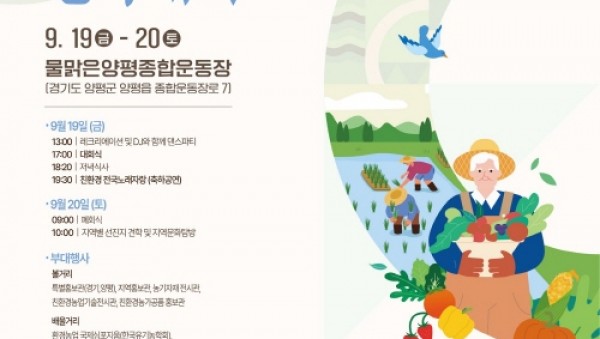 경기도는 오는 19일부터 20일까지 양평 물맑은양평종합운동장에서 ‘2025 한국친환경농업인 전국대회’를 개최한다고 밝혔다. 전국 10개 시도 친환경농업인 1만여 명이 참여하는 대규모 행사로, 친환경 실천 결의와 기후위기 대응 방안을 공유하는 교류의 장이 될 전망이다.전국대회+포스터‘친환…