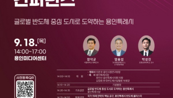 용인특례시(시장 이상일)는 재단법인 용인시정연구원과 함께 18일 오후 2시 용인미디어센터에서 ‘2025 용인 반도체 컨퍼런스’를 연다고 11일 밝혔다. 용인특례시 '2025 용인 반도체 컨퍼런스' 포스터시는 반도체 산업의 글로벌 경쟁력 강화 방안을 모색하고, 산·학·연·관 네트…