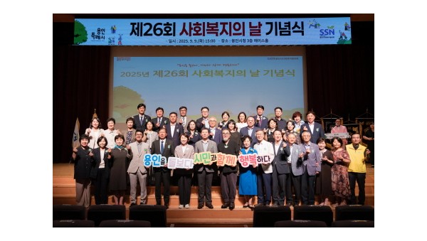 용인특례시의회(의장 유진선)는 9일 용인시청 에이스홀에서 열린 제26회 사회복지의 날 기념식에 참석했다.용인특례시의회, 제26회 사회복지의 날 기념식 참석이날 기념식에는 유진선 의장을 비롯한 의원들과 이상일 시장, 시민 등 500여 명이 참석해 사회복지 유공자를 표창하고 종사자들의 헌신…