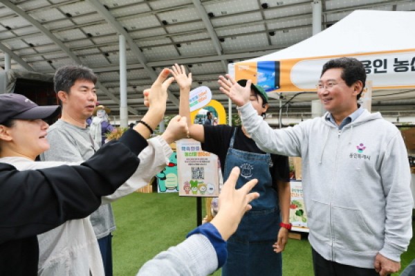 용인특례시(시장 이상일)는 지역 우수 농산물을 널리 알리기 위해 18일 시청 광장에서 열린 ‘2025년 제7회 용인 북페스티벌’ 현장에서 시민 참여 이벤트 ‘책 속 한 줄 쓰Go, 농산물 받Go’를 진행했다. 이상일 용인특례시장이 18일 시청 광장에서 열린 '책 속 한 줄 쓰Go, 농산물 받Go' 행사에서 시민들과 인사를 나누고 있다.이 이벤트는 시민이 직접 책 속에서 인상 깊은 문장을 적어 제출하면 지역 농산물을 증…