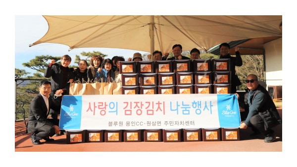 블루원(대표이사 윤재연 부회장) 용인C.C는 12월 8일 원삼면(면장 박찬진) 주민자치센터에서 지역의 이웃을 위한 사랑의 김장김치 30통(360리터)과 반찬 30통을 전달했다. 김장김치와 반찬은 겨울나기를 준비하고 있는 원삼면 지역의 홀로 계신 어르신 25가구와 소외된 이웃에게 전달한다.사랑의 김장김치와 반찬을 전달하는 블루원 용인C.C와 원삼면 주민자치센터 임직원들 하루 앞서 12월 7일은 블루…
