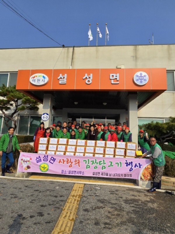 새마을설성면남녀협의회(회장 서태석, 조영자)는 11월 13일(목), 설성면행정복지센터 주차장에서 설성면 관내 어려운 가정을 위한 ‘사랑의 김장 나누기’ 봉사활동을 펼쳤다.3. 설성면새마을협의회 사랑의 김장 나누기 봉사활동 펼쳐1 이날 행사는 설성면 새마을남녀지도자 60여 명이 참여하여 배추 700여 포기로 김장 김치를 담가 관내 홀몸 어르신, 저소득 가정 등 어려운 이웃에게 직접 전달해 따뜻한 겨울을 날 수 있도록 했다. 관내 업체인 도드람 디에스피드에서도 10여 명의 직원들이 방문하여 김…