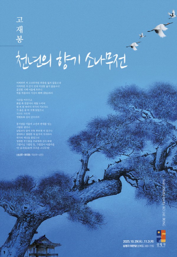 소나무의 구부러지고 휘어진 아름다운 형상을 한지에 생동감 넘치게 그려 나무 본연의 모습을 회화적 조형성으로 재해석시킨 작품으로 고재봉 작가는 오는 2025년 10월 29일(수) ~ 11월 3일(월)까지 서울 삼청각 취한당에서 '천년의 향기 소나무展' 타이틀로 개인전을 진행한다. 우리 민족이 사랑하는 소나무는 사계절 변하지 않는 모습으로 절개의 상징이 되어 전통 한국화의 주요 소재가 되었다. 소나무를 단순히 그리는 대상이 아닌 상징적인 존재이자 경이로운 가치로 생각하여 살아 움직이게 만들었다. 작품 속 소나무는 단순한 풍경이…