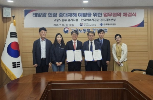 오기환 고용노동부 경기지청장과 이재용 한국에너지공단 경기지역본부장은 9월 24일(수) 오후 1시 30분, 고용노동부 경기지청에서 태양광 건설현장의 중대재해 예방과 안전관리 강화를 위한 업무협약(MOU)을 체결했다.태양광관련 업무협약체결 이번 협약을 통해 양 기관은, ‣지붕 태양광 현장 맞춤형 안전점검 체크리스트 공동 개발·보급, ‣재생에너지 보급사업 참여기업 등 관련 정보 제공 및 …