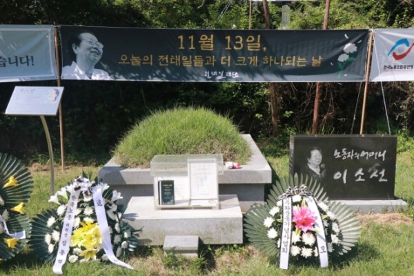 ‘근로기준법을 지켜라’라는 외침과 함께 산화한 아들 전태일 열사를 가슴에 담고 일생을 노동자의 어머니로 살며 투쟁한 ‘노동자의 어머니’ 이소선 여사의 14주기 추도식이 3일 오전 11시 마석모란공원 이소선 묘역 앞에서 열렸다. 추도식에 참석한 한국노총 강석윤 상임부위원장은 추도사에서 “어머니가 생전에 ‘노동자는 하나 되어야 이긴다, 1천만 노동자 중 10만 명만 서울광장에 모여서 하루만 집에 가지…