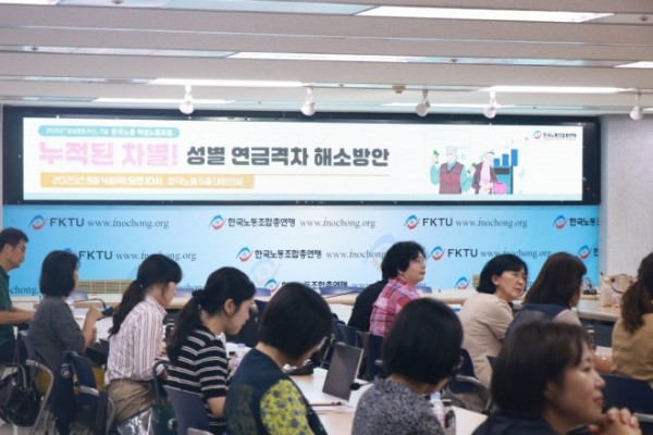 한국노총이 2025년 양성평등주간을 맞이하여 성별 연금격차 실태를 살펴보고, 해결방안을 모색하기 위해 4일 오전 10시 한국노총 6층 대회의실에서 ‘한국노총 여성노동포럼’을 개최했다. 이번 토론회는 노동시장에서 발생한 차별이 노동시장 퇴장 이후까지 지속돼 연금격차까지 유발하고 있다는 사실에 주목해 여성이 전 생애에 걸쳐 취약한 지위에서 벗어나지 못하는 문제를 다루었다. 토론회에 앞서 한국노총 정연실…
