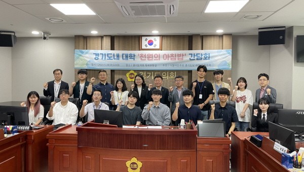 더불어민주당 경기도당 대학생위원회(위원장 이자형)는 30일 경기도의회에서 도내 대학생이 참여하는‘천원의 아침밥’ 간담회를 열었다. 천원의아침밥 간담회사진이번 간담회는 대학생들의 식비 부담을 줄이기 위한 ‘천원의 아침밥’을 경기도 전체 대학으로 확대하는 방안 마련을 위해 진행됐다. ‘천원의 아침밥’은 대학교 학생 식당에서 천원으로 제공하는 아침 식사다. 이날 간담회에는 도내 대학인 가천, 명지…