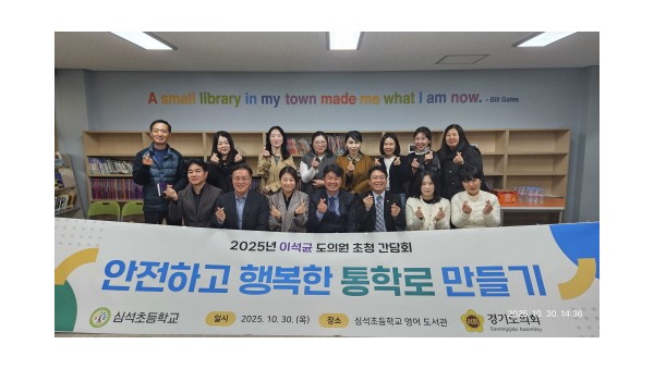 경기도의회 기획재정위원회 이석균 의원(국민의힘, 남양주1)은 30일(목) 남양주시 화도읍 심석초등학교에서 열린 ‘안전하고 행복한 통학로 만들기 간담회’에 참석해 학생들의 안전한 통학환경 조성을 위한 구체적인 대책을 약속했다.이석균 의원, 아이들 통학길은 안전해야 한다. 심석초 통학로 전…