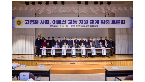 23일 군포문화예술회관 국제회의장에서 ‘고령화 사회 대응, 어르신 교통 지원 체계 확충 토론회’가 열렸다. 경기도의회 건설교통위원회 소속 성복임 의원(더불어민주당, 군포4) 주최로 열린 이날 토론회에는 사회복지, 법률 등 다양한 분야의 전문가와 관계자 등 250여명이 모여 고령사회에 대응한 교통 지원 정책의 확대 방안을 심도 있게 논의했다.251023 성복임 의원, 고령화 사회 대응, 어르신 교통 지원 체계 …