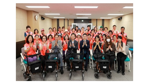 용인특례시의 이동 취약계층 돕기 위해 용인시약사회가 보행보조기구 60대 기증