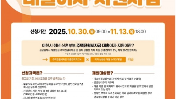 이천시, 무주택 청년 신혼부부 주택전월세자금 대출이자 지원