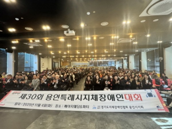 용인특례시(시장 이상일)는 4일 용인 페이지웨딩에서 ‘제29회 용인시 지체장애인대회’가 열렸다고 6일 밝혔다.4일 열린 제29회 용인시 지체장애인대회(사)경기도지체장애인연합회 용인시지회(회장 강석원)가 주최한 이 행사는 매년 11월 11일 지체장애인의 날을 기념해 열린다.이 자리에는 장애인단체 관계자와 봉사자 등 약 300여명이 참석했고, 지체장애인과 가족, 자원봉사자들이 함께 소통하면서 장애인의 사회참여와 복지 향상을 도모했…