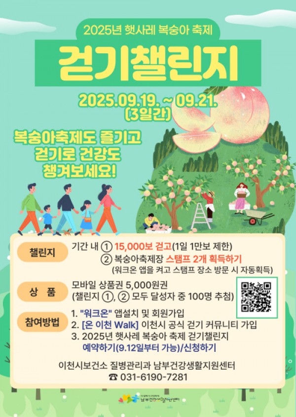 이천시 남부건강생활지원센터, 2025년 햇사레 복숭아축제 ‘걷기 챌린지’ 운영