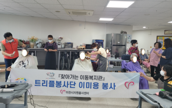 (재)이천시자원봉사센터(센터장 이미선)는 9월 25일 찾아가는 이동복지관을 운영하며 한나요양원을 방문하여 어르신들께 이·미용 서비스를 제공하며 따뜻한 나눔을 실천했다.16 찾아가는 이동복지관(이미용 봉사) 트리플 이·미용 봉사단은 전문 자격증을 소지한 분들로 ‘재능기부를 통해 지역사회에 온정을 나누고자’하는 시민들이 자발적으로 모여 구성된 재능봉사단으로 요양원 및 사회복지시설 등 거동이 불편한 계층을 대상으로 이·미용…