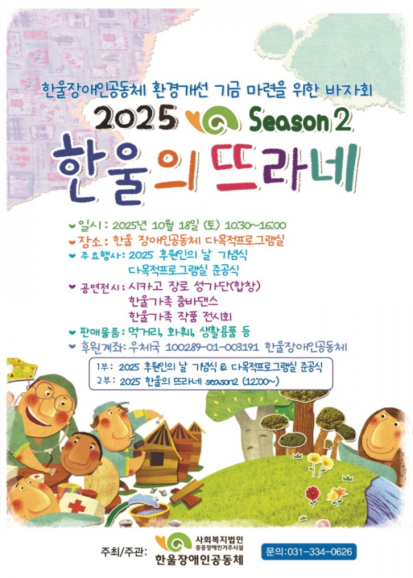 일시:2025.10.18일(토)10:30~16:00 장소한울 장애인공동체 다목적프로 그램실 2025후원인…
