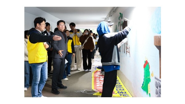 이상일 용인특례시장은 2일 오후 동백호수공원에서 진행된 ‘주민과 함께하는 아름다운 산책로 만들기’ 벽화그리기 현장을 방문해 참여 주민과 학생 자원봉사자들에게 감사의 뜻을 전했다. 이상일 용인특례시장은 2일 동백호수공원 벽화그리기 현장을 찾아 봉사자들을 격려했다 이번 사업은 동백2동 주민자치위원회(회장 황영한)와 초당초등학교 학부모 임원단(대표 주현진)이 지난 8월부터 매주 주말에 함께 진행해 온 것으로, 시의…
