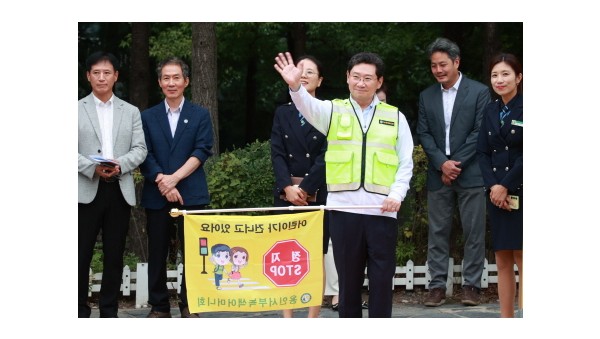 이상일 용인특례시장, 수지구 현암초 앞 교통지도 봉사 나서