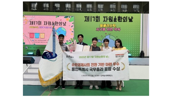 용인특례시(시장 이상일)는 5일 자원순환 분야 공로를 인정받아 ‘2025년 자원순환 유공 국무총리 단체 표창’을 받았다고 8일 밝혔다. 용인특례시는 5일 자원순환 분야 공로를 인정받아 '2025년 자원순환 유공 국무총리 단체 표창'을 받았다환경부는 ‘자원순환의 날(9…