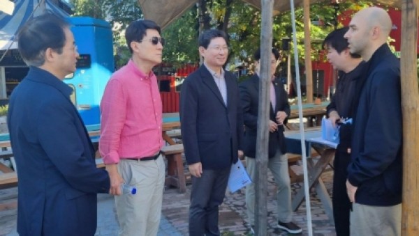 이상일 용인특례시장은 대한민국대도시시장협의회 소속 시장단(이강덕 포항시장, 이동환 고양시장, 김병수 김포시장)과 함께 7일(현지시간) 독일 베를린에서 시민들이 협동조합 결성을 통해 조성한 대표적인 도시재생 모델 ‘홀쯔막트 25(Holzmarkt 25)’를 방문해 관계자의 설명을 듣고 현…