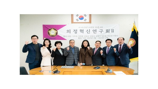 용인특례시의회 의원연구단체 「의정혁신연구회Ⅱ」는 지방의회 권한 확보와 자치분권 강화 방안을 연구해 용인특례시의회의 위상을 높이고자 결성됐다. 기주옥(대표), 김길수(간사), 강영웅, 김상수, 김영식, 김운봉, 박은선, 이창식 의원 등 8명이 활발한 활동을 하고 있는 「의정혁신연구회Ⅱ」의…