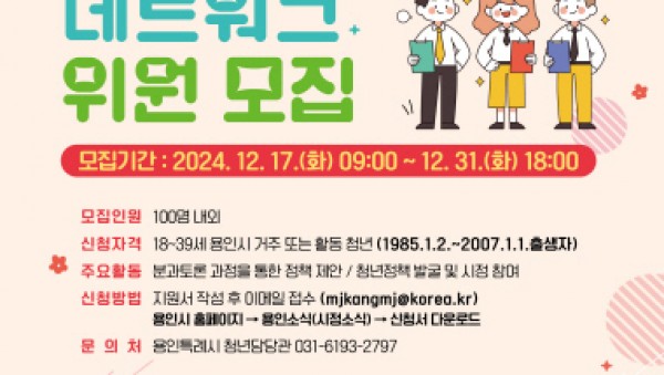 용인특례시, 제5기 청년정책네트워크 위원 모집
