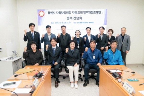 용인특례시의회 남홍숙 의원(중앙동·이동읍·남사읍/더불어민주당)은 23일 의회 대회의실에서 ‘용인시 자동차정비업 지원 조례’ 개정을 위한 정책간담회를 개최했다.용인시 자동차정비업 지원 조례 개정을 위한 정책간담회 참석자들이 기념촬영을 하고 있다.용인시 자동차정비업 지원 조례 개정을 위한 정책간담회가 진행되고 있다.이번 간담회는 취약계층 및 사회적 약자가 자동차 정비·점검비 부담으로 인해 안전사고 위험에 노출되는 문제를 해소하고,…
