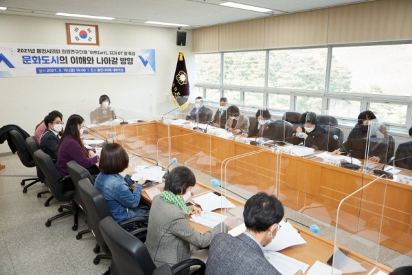 용인시의회 의원연구단체 아트(art)지기(대표 이은경)는 19일 오후 2시 대회의실에서 오리엔테이션 및 특강을 개최했다. 20210319 의원연구단체 아트지기, 오리엔테이션 및 특강 개최(1)이날 특강에는 아트지기 연구단체 회원들과 용인시 교육문화국장, 문화예술과장, 문화정책팀장, 용인문화재단, 예총 및 문화원 관계자, 용인시에서 활동하는 예술활동가 등이 참석했다. 20210319 의원연구단체 아트지기, 오리엔…